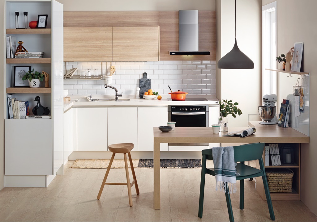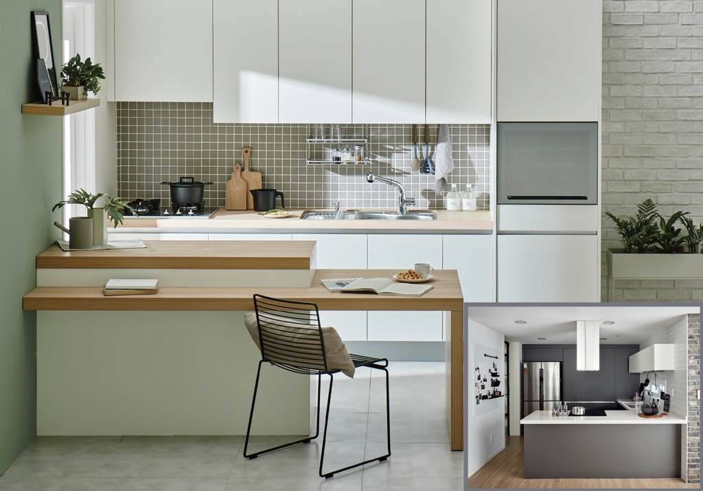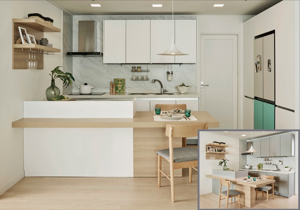 밝고 따뜻한 컬러와 소프트한 매트 질감이 만난 트렌디한 키친